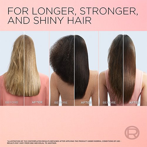 Hoitoaineen koostumus sisältää kasviperäistä keratiinia, vitamiinia ja risiiniöljyä ja se jälleenrakentaa hiusten rakennetta latvoihin saakka, vahvistaa hiuksia* ja auttaa hiuksia säilymään pitkinä ja kauniina.*Instrumental test after multiple applications of the shampoo and conditioner of the range.