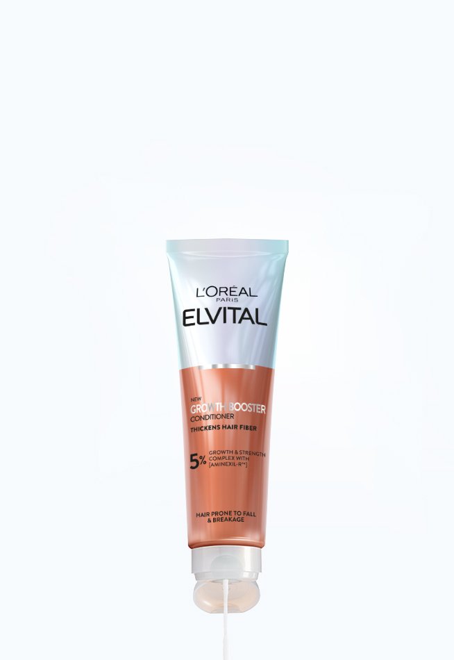 L'Oréal Paris Elvital Growth Booster vahvistava hoitoaine vähentää hiustenlähtöä*. Stressi, perinnölliset tekijät ja ulkoiset vaikutukset voivat aiheuttaa hiustenlähtöä hiusten katkeilun takia. Hoitoaineen koostumus sisältää Amenixil-R™ sisältävää Growth and Strength Complex -ainesosayhdistemää ja kosmeettiskliinisen dokumentaation perusteella koostumus vahvistaa hiuksia, vähentää hiustenlähtöä ja pidentää