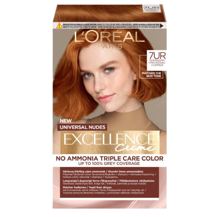 L'Oreal Paris Excellence Universal Nudes on ammoniakiton hiusväri, jonka vivahteet sopivat kaikkiin ihon sävyihin. Koostumuksen sisältämä U-refleksi on ainutlaatuinen sekoitus lämpimiä ja kylmiä vivahteita, joka antaa täyteläisen ja luonnolliselta näyttävän värjäystuloksen.