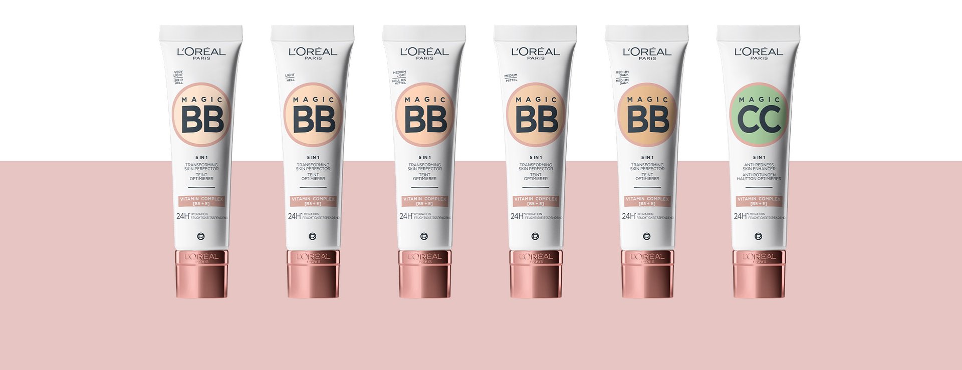L'Oréal Paris Magic BB-voide muuntuu BB-teknologian ansiosta hoitavasta voiteesta kevyesti peittäväksi meikkivoiteeksi. L'Oréal Paris Magic CC-voiteen vihreät mikropigmentit muuttuvat iholle levitettäessä kevyesti peittäväksi meikkivoiteeksi, joka neutralisoi punoitusta.