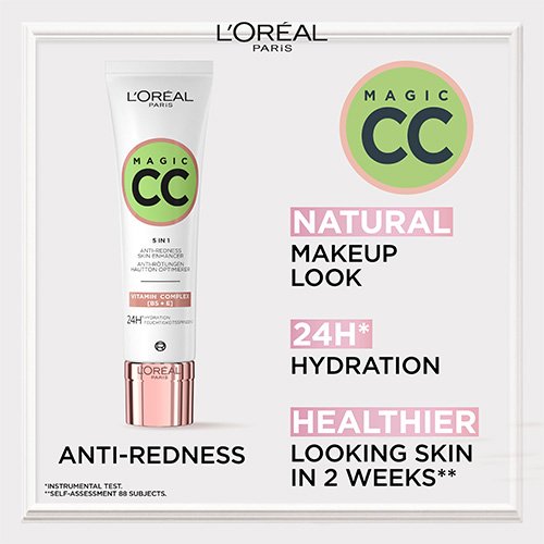 L'Oréal Paris Magic CC-voide häivyttää ihon punoitusta ja antaa kevyen lopputuloksen.