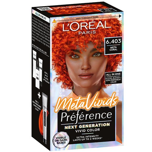 Préférence Metavivids on käytännöllinen kaksivaiheinen rutiini, jossa yhdistyy vaalennus ja hiusväri samassa setissä. Vaalennusaine vaalentaa hiuksia jopa 9 astetta ja suoraväri antaa säteilevän ja intensiivisen värjäystuloksen.